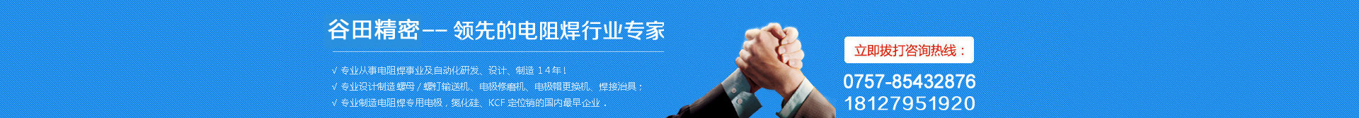Ê¼ÓÚ2004£¬´ÓǰÉí-¹È´¨»úµç¹«Ë¾µ½Èç½ñµÄ¹ÈÌᆱ»ú.ÎÒÃǹÈÌï¡¢¹ÈÌïÈËʸ־²»Ó壬һֱרעÓÚµç×躸£¨µãº¸£©ÊÂÒµ£¬×¨Òµ¡¢×¨ÐÄΪÆû³µº¸×°Óû§Ìṩ¸ßÆ·ÖÊ¡¢¼«¾ßÐԼ۱ȵÄÉ豸¡¢µç¼«²úÆ·¡£ÎÒÃǵIJúÆ·£¬´ÓÃ²ËÆ¼òµ¥µÄµç¼«¡¢KCFºÄ²Ä£¬µ½µç×躸»ú¡¢×Ô¶¯ÂÝĸÊäËÍ»ú¡¢×Ô¶¯ÂÝ˨ÊäËÍ»ú¡¢µç¼«ÐÞÄ¥»ú¡¢µç¼«¸ü»»»ú¡¢º¸½ÓÆ·ÖÊ¼à¿Ø¹ÜÀíÒÇÆ÷..........
